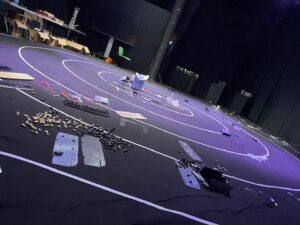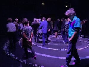 La rencontre a débuté par une réflexion en mouvement : les élèves ont marché à l’intérieur d’une immense spirale dessinée au sol. Cette expérience collective les a amenés à réfléchir à la durée de vie de nos appareils électroniques, aux impacts écologiques considérables liés à leur fabrication, mais aussi aux inégalités d’accès à l’électricité dans le monde.