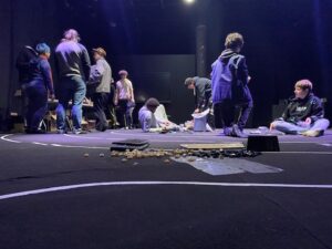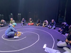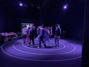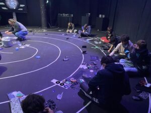 La rencontre a débuté par une réflexion en mouvement : les élèves ont marché à l’intérieur d’une immense spirale dessinée au sol. Cette expérience collective les a amenés à réfléchir à la durée de vie de nos appareils électroniques, aux impacts écologiques considérables liés à leur fabrication, mais aussi aux inégalités d’accès à l’électricité dans le monde.