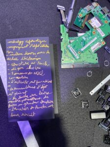 Suzon Fuks a ensuite présenté son univers artistique, composé de performances et d’œuvres (bijoux, sculptures, livres, galaxies…) créées à partir de déchets électroniques.
